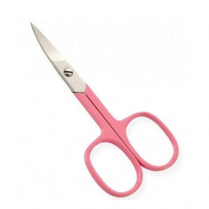 Available Sizes. 3.5 inches All scissors are made of superior quality stainless steel 410, HRC (hardness) 45 – 48. Available in Blister Packing, Pouches and Plastic Bags. Nail Scissors Tower Pointed Pink Color Adjustable Screw, Curved