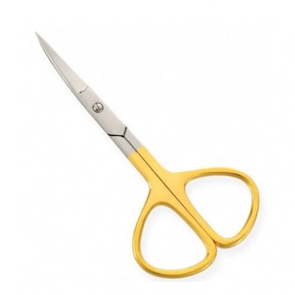 Available Sizes. 3.5 inches Details All scissors are made of superior quality stainless steel 410, HRC (hardness) 45 – 48. Available in Blister Packing, Pouches and Plastic Bags. Nail Scissors Half Gold Platted Curved, Adjustable Screw
