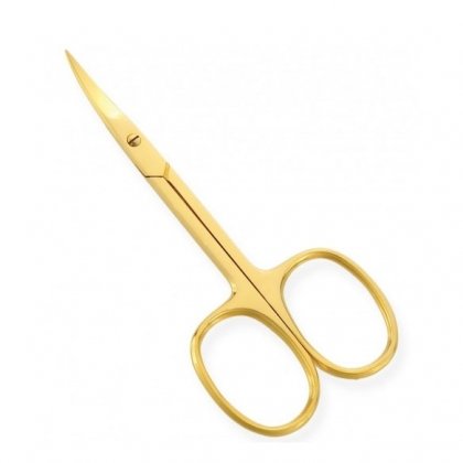 Available Sizes. 3.5 inches Details All scissors are made of superior quality stainless steel 410, HRC (hardness) 45 – 48. Available in Blister Packing, Pouches and Plastic Bags. Nail Scissors Full Gold Platted Curved, Adjustable Screw